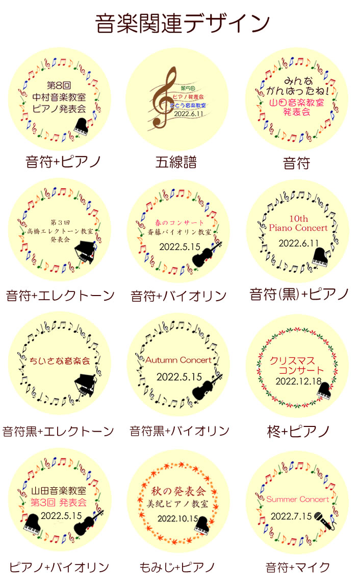(挿入可能イラスト:ピアノ、エレクトーン、バイオリン、ピアノ+バイオリン、フルート、鍵盤、マイク)