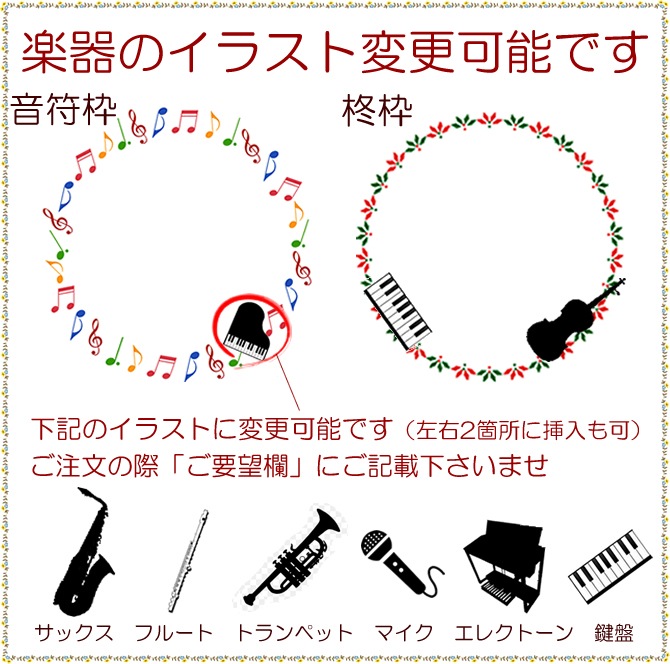 *音楽関連の選択肢では「〇〇〇」部分で楽器のイラストを御指示頂けます。